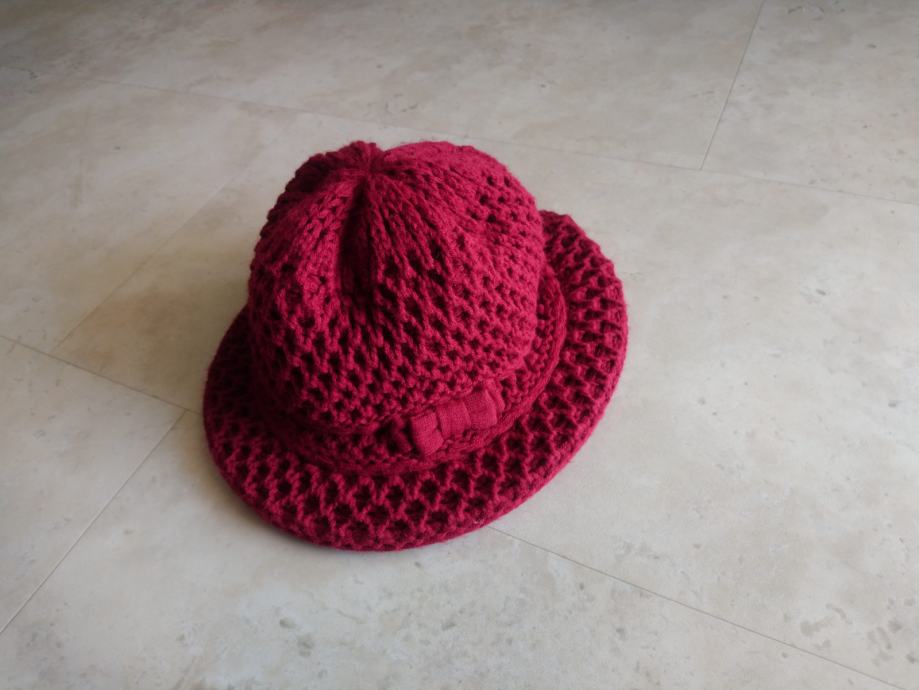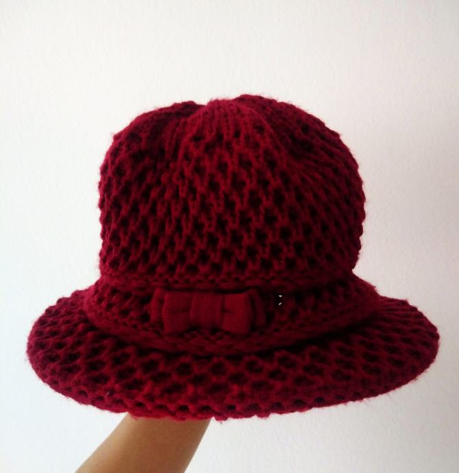 Bordo pleten klobuček. Velikost S - premer 56 cm ( se pa razširi, ker je pleten)