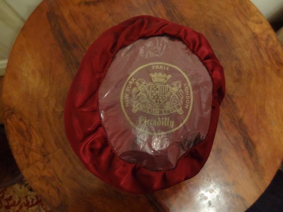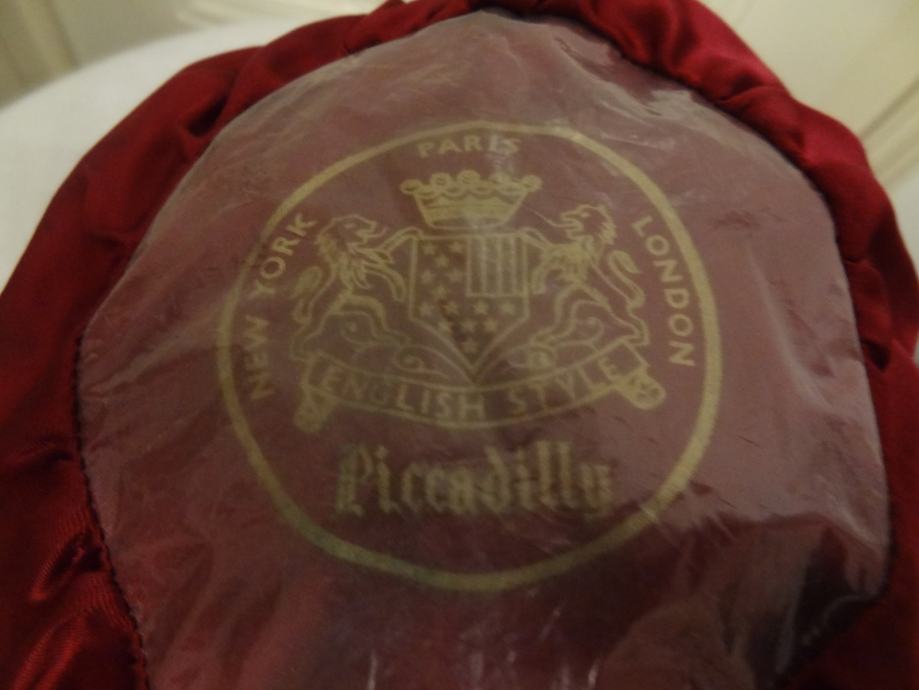 LJUBEK VINTAGE KLOBUČEK ANGLEŠKI STIL PICCADILLY (NEW YORK LONDON PARIS). KLOBUČEK JE MANJŠE VELIKOSTI, SAJ SO BILE ŽENSKE VČASIH MANJŠE (PROPORCIONALNO).