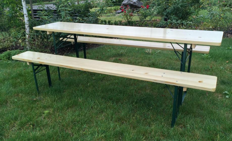 Gasilski komplet je najbolj primeren za notranjo in zunanjo uporabo. S svojo odpornostjo je gasilski komplet zelo priljubljen na prireditvah in zabavah. Izjemno praktičen je gasilski komplet tudi pri spontanih prireditvah, ki ga lahko postavite v zelo kratkem času.Preprosto in nekompliciranoMiza in klopi so zložljive, kar omogoča preprost prevoz in hkrati shranjevanje s prihrankom prostora. Poleg tega je mogoče zelo hitro postaviti tudi večje količine.Značilnosti opreme in mere gasilskega kompleta- 1 miza: D 220 cm x Š 50 cm x V 74 cm- 2 klopi: D 220 cm x Š 25 cm x V 47 cm- Les z UV premazom, barva: naravna