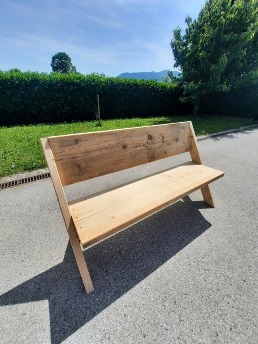 Prodam ročno izdelano klop iz masivnega smrekovega lesa. Primerna je za 3 osebe in bolj za zunanjo uporabo (vrt, terasa, balkon...). Ni predvidena, da se jo veliko premika, saj je precej težka, se pa na njej lepo sedi. Mere: 153×70×85 cm.