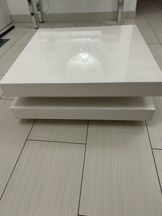 Prodam moderno belo klubsko mizico za dnevno sobo, dimenzij 75 × 75 cm. Mizica je zelo lepo ohranjena, praktično kot nova, z visokim sijajem. Posebnost je vrtljiv zgornji del, ki omogoča več funkcionalnosti in zanimiv videz.