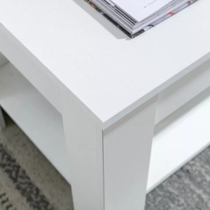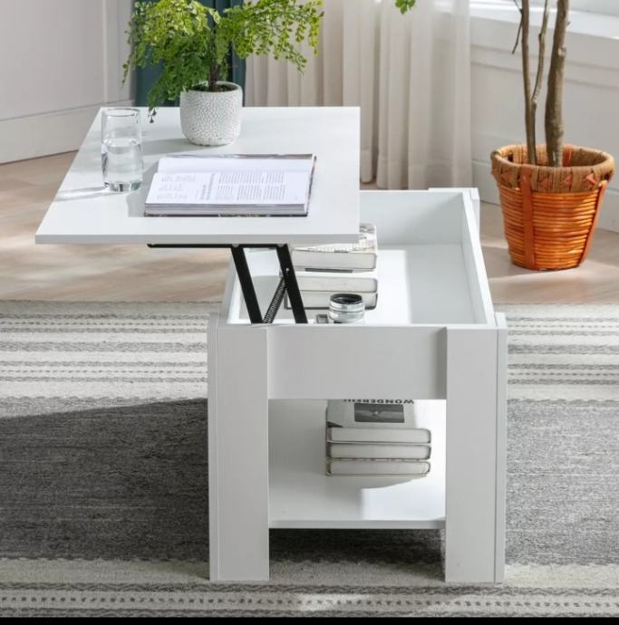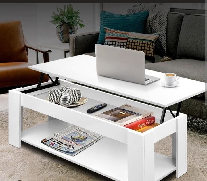 Nova kavna mizica, ki ima izvlečno vrhnjo ploščo. Višino je mogoče nastaviti do 65cm, kar jo naredi idealno za udobno delo od doma na računalniku, branje ali obedovanje brez potrebe po nagibanju naprej. Dodatni prostor za shranjevanje pod ploščo in polico omogoča shranjevanje knjig, revij ali prenosnik, zaradi česar je funkcionalna in praktična. Barva: bela Velikost: dolžina 100cm, nastavljiva višina 45-65 cm, širina 50 cm.