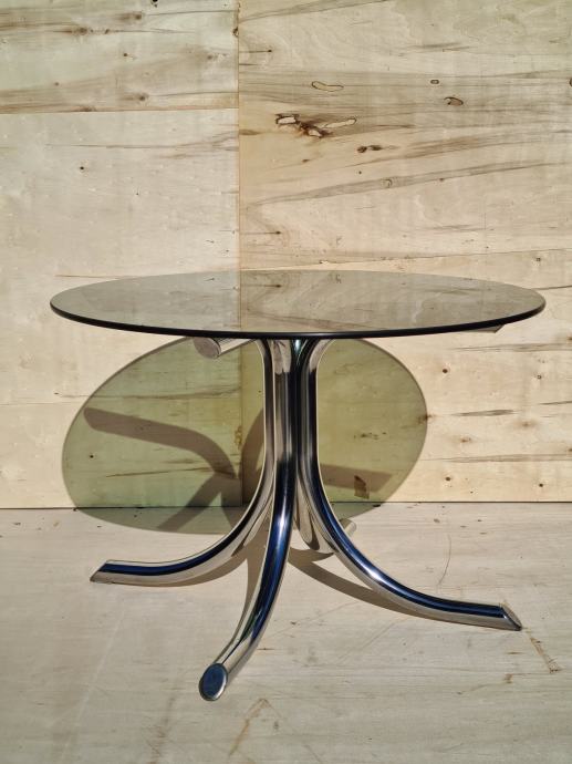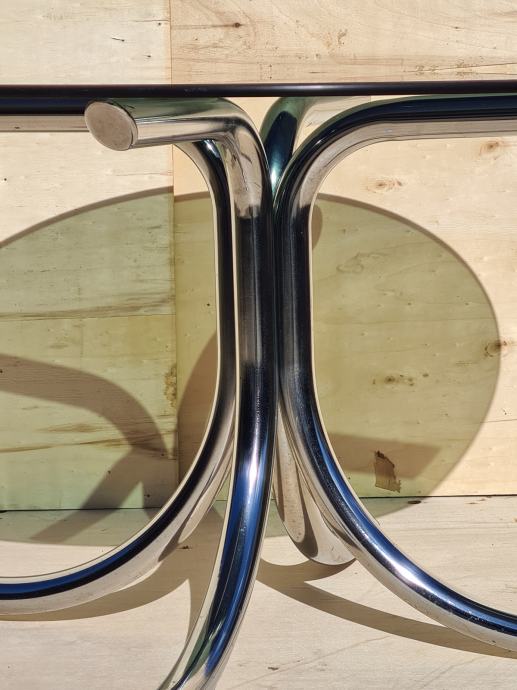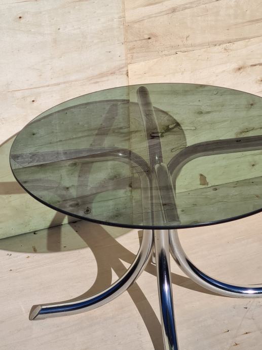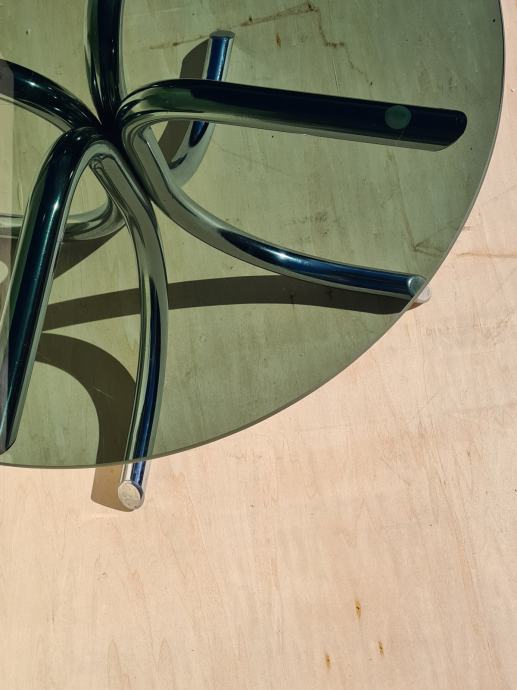 Lepa steklena klubska mizica, miza z kovinskimi nogami.