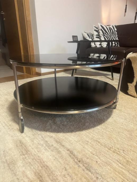 Prodam okroglo klubsko mizo, dimenzije: premer 75cm, višina 40cm, črno steklo na dveh nivojih.
