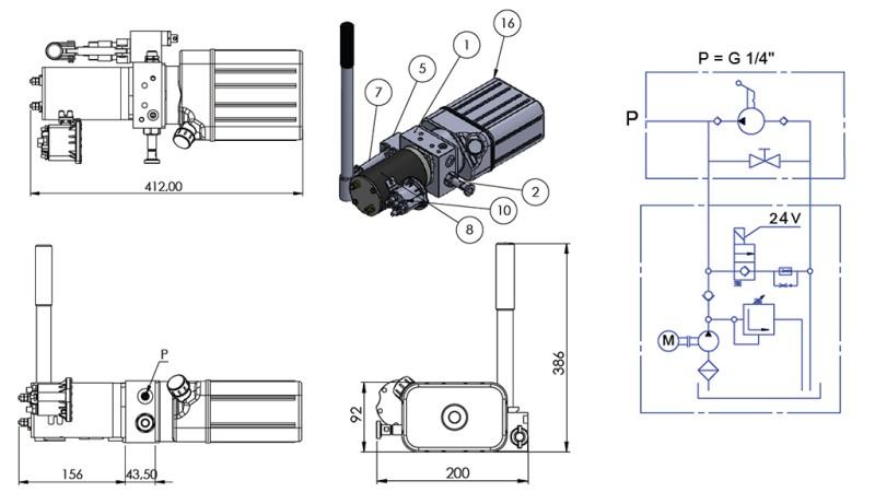13873 - MINI HIDRAVLIČNI AGREGAT 24V DC - 0,8kW = 0,5cc - 1,5 lit - enosmerni sklop (PVC) z ročno črpalko