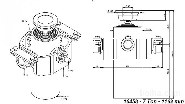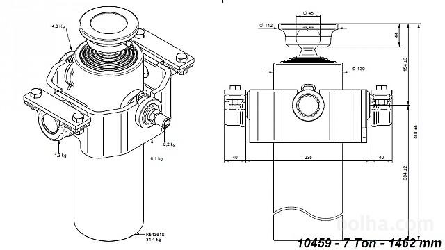 Teleskopski kiper cilinder viseči v zibelki za kiper prikolice