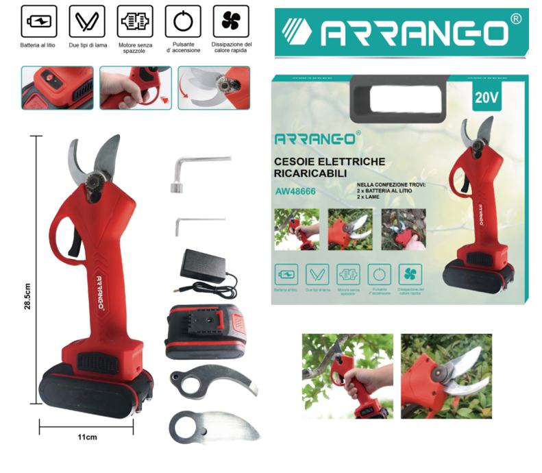 Arrango Akumulatorske Škarje za Obrezovanje Vej + 2x Baterija + Kovček