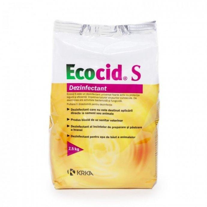 Ecocid® S je varno razkužilo, v kolikor se uporablja skladno z navodili za uporabo. Priprava je enostavna – vsebino vrečke (50 g praška) raztopite v 5 litrih mlačne vode. Tako pripravljeno 1-% raztopino pustite učinkovati na površinah 15 minut, nato pa jih sperite z vodo pitne kakovosti.