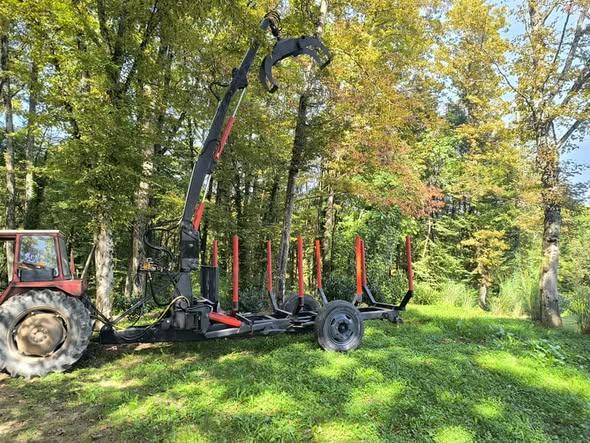 Naprodaj gozdarska prikolica, primirna tudi za manjši traktor (40hp+), masa prikolice 1650kg.