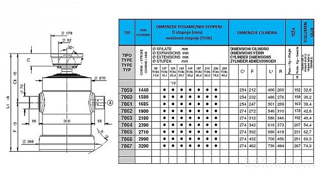 7067S -TELESKOPSKI CILINDER 7 STOPENJ HOD 3242mm FI 270mm