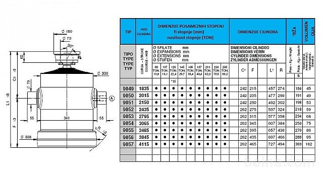 9050S -TELESKOPSKI CILINDER 9 STOPENJ HOD 2022mm FI 300mm