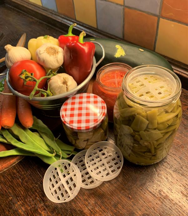 Na vloženo sadje ali zelenjavo položimo plastično mrežico in kozarec zapremo (peresa obrnjena navzgor). Tako so sadje ali zelenjava v celoti namočeni v tekočini. Vaše dobrote ne morejo oksidirati in jim podaljša življenjsko dobo ozimnice.