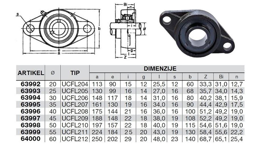 63992 - LEŽAJ UCFL 204 fi 20mm - FAG