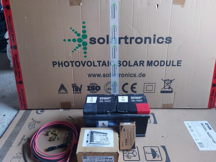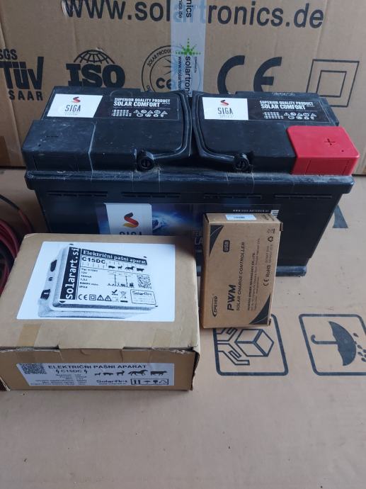 Prodam nov in nerabljen pastir na solarni panel. Paket vsebuje monokristalni panel 140W, akumulator z 120ah, električni pastir 1,5J, regulator, konektor mc4, solarni kabel 4mm (2x5m), spojki za akumulator ter profil con-sol. Maksimalna dolžina ograje 15km in priporočljiva dolžina ograje 3km. Menjave niso možne!