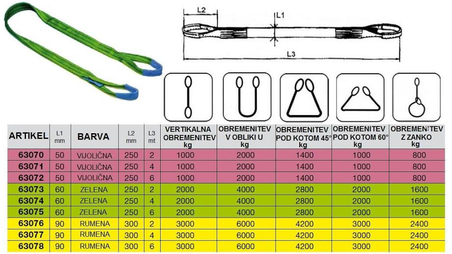 Poliester pasovi z ušesi za dvigovanje bremena.