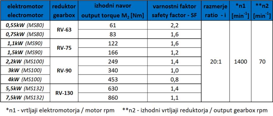 V ponudbi imamo reduktorje za elektromotorje z različnim prestavnim razmerjem.