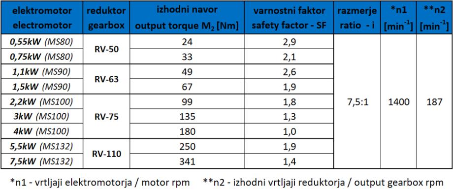 V ponudbi imamo reduktorje za elektromotorje z različnim prestavnim razmerjem.