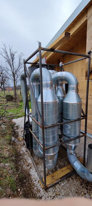 Pretočna sušilnica za žagovino. Zelo malo rabljena 2.2kW turbina. V eni uri posuši cca3 m3 žagovine vlažnosti okrog 40% na 12% vlage.