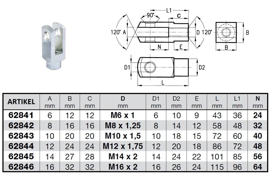 62841 - VILIČAST NOSILEC Z LUKNJO M6x1 DOLGI (5kom)