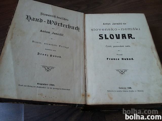 - SLOVENSKO - NEMŠKI SLOVAR 1908 JANEŽIČ ANTON - 19,90 evr,