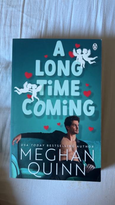A Long Time Coming – Meghan Quinn. Topla, zabavna romantična komedija o najboljših prijateljih, ki ugotovita, da je prava ljubezen bila ves čas pred njima. Prebrana enkrat, zelo lepo ohranjena in brez poškodb. Idealna za ljubitelje romanov.