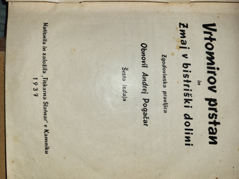 ANDREJ POGAČAR, VRTOMIROV PRSTAN ALI ZMAJ V BISTRIŠKI DOLINI, 1937