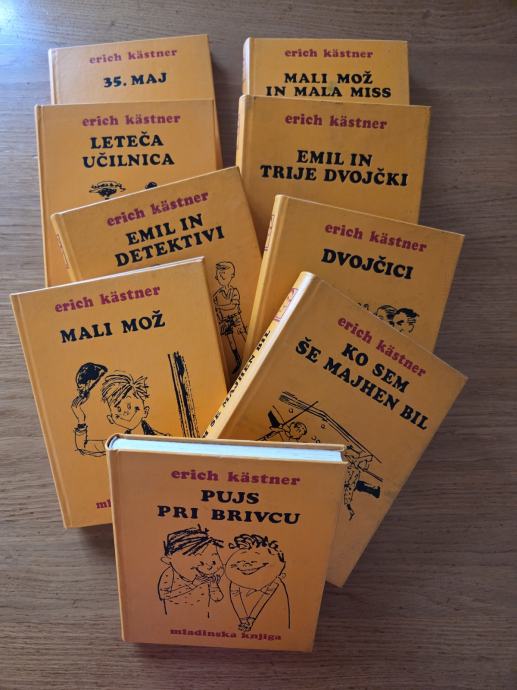 Prodamo vec knjig oziroma celo zbirko knjig, ki jih je napisal Eric Kastner. Skupaj je 9 knjig : Dvojčici, Emil in detektivi, Emil in trije dvojčki, Mali mož, Mali mož in mala miss, Leteča učilnica, Pujs pri brivcu, Ko sem še majhen bil, 35. maj. Knjige so originalne, zelo dobro ohranjene, hranjene na polici (ne v kleti).