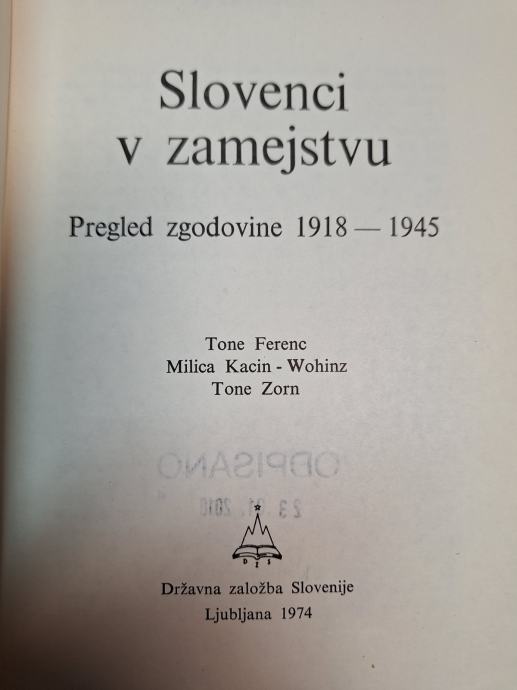 FERENC, SLOVENCI V ZAMEJSTVU , PREGLED ZGODOVINE 1918 - 1945
