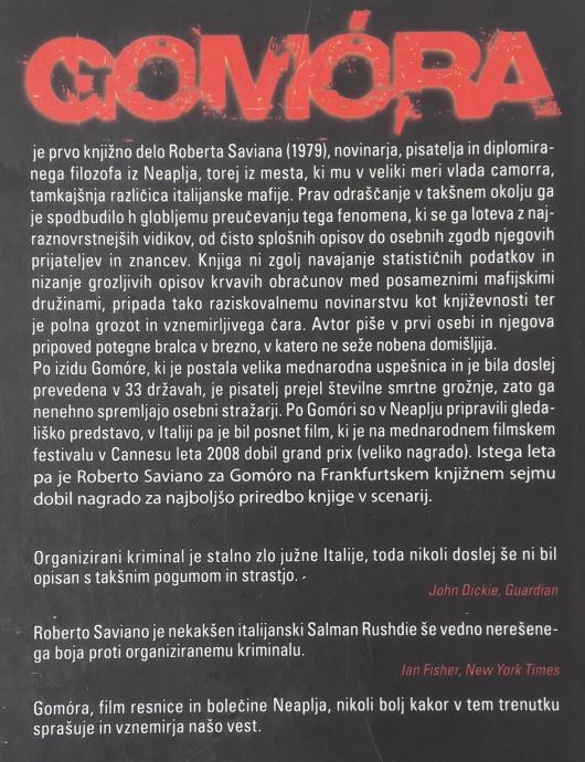 Roberto Saviano, 232 strani, trda vezava, 16 x 24 cm, MK 2008, lepo ohranjeno.
