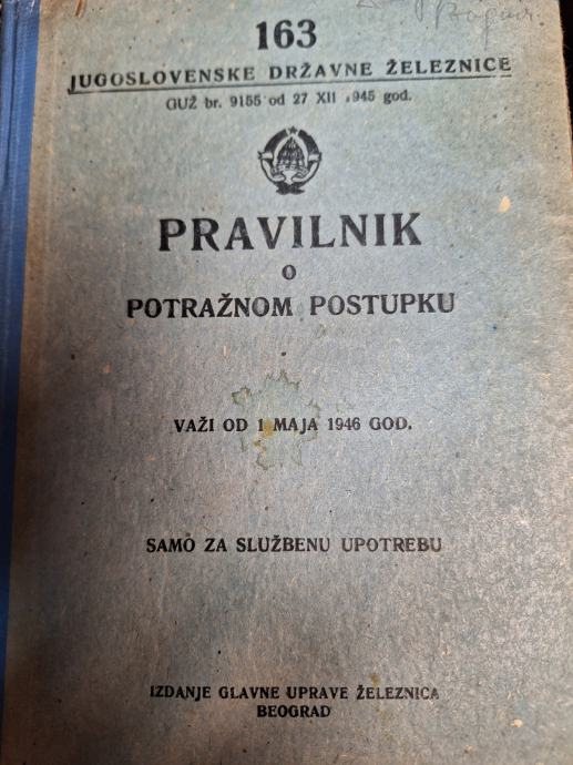 JUGOSLOVANSKE DRŽAVNE ŽELEZNICE PRAVILNIK O POTRAŽNOM POSTOPKU 1946