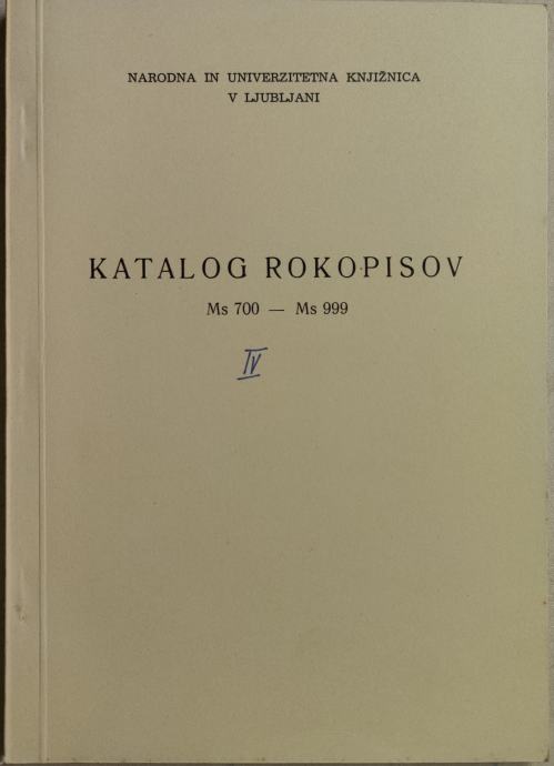 Katalog rokopisov Narodne in univerzitetne knjižnice v Ljubljani, zv. 1-5