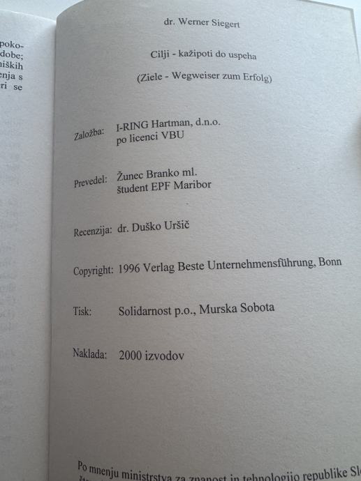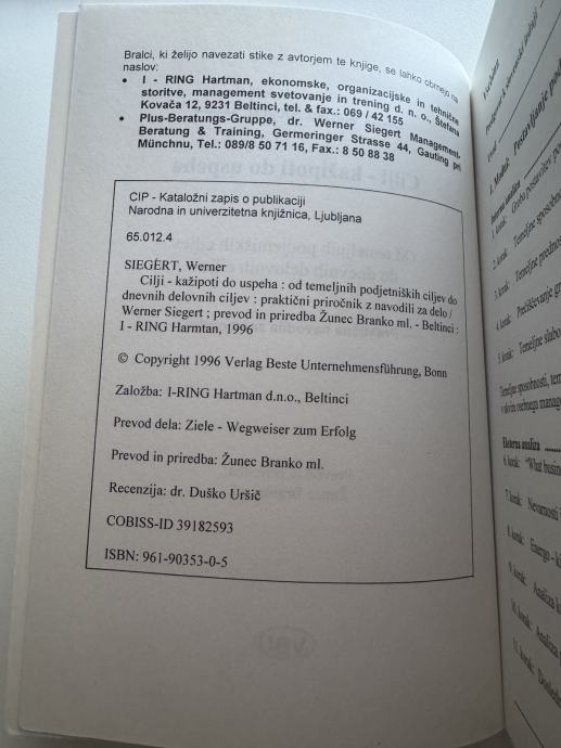 Prodam knjigo Cilji – kažipoti do uspeha (Werner Siegert).