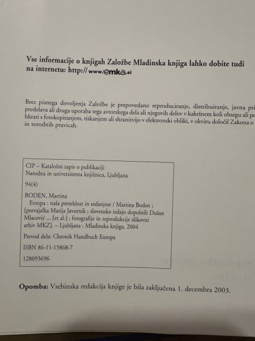 EVROPA: NAŠA PRETEKLOST IN SEDANJOST - Martina Boden - 2004