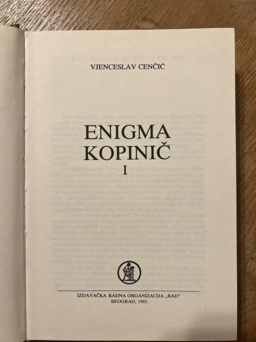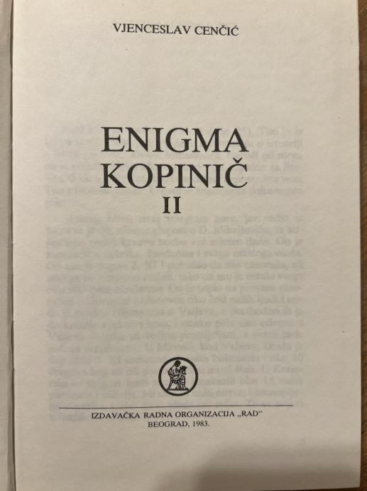 ENIGMA KOPINIČ 2 - Vjenceslav Cenćić - 1983 - PRODANO