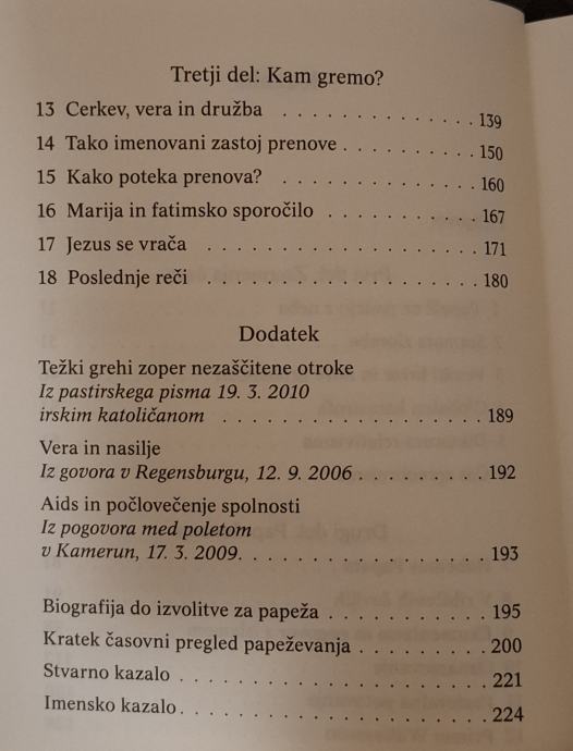 LUČ SVETA, PAPEŽ, CERKEV IN ZNAMENJE ČASA, Benedikt XVI