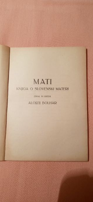 MATI - KNJIGA O SLOVENSKI MATERI ZBRAL IN UREDIL ALOJZIJ BOLHAR TRDA VEZAVA ZALOŽILA DRUŽBA SV.MOHORJA 1930, 128 STRANI.