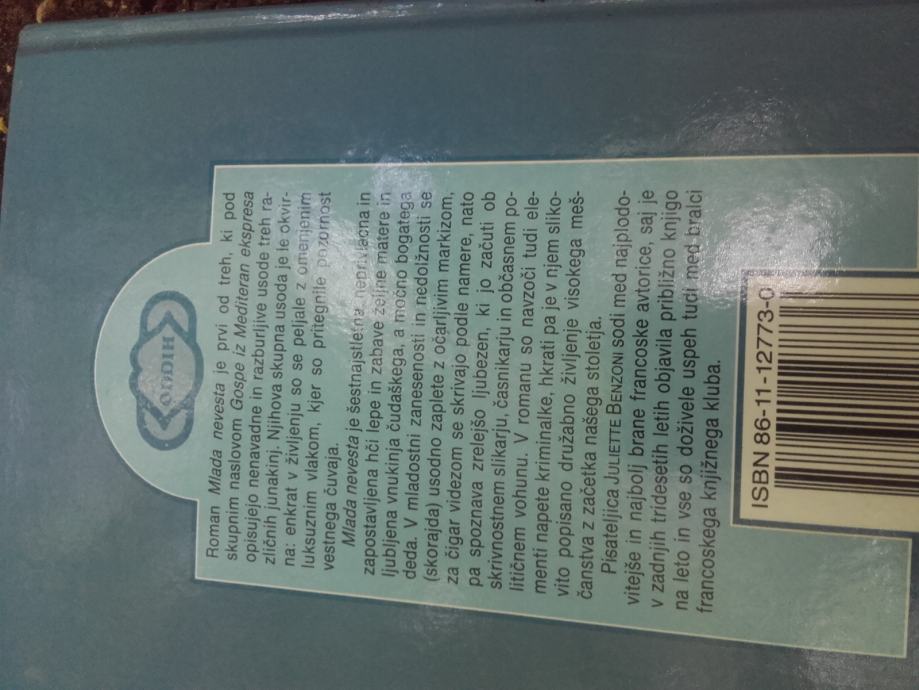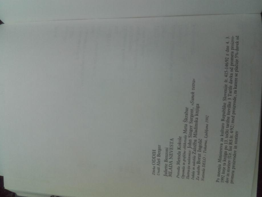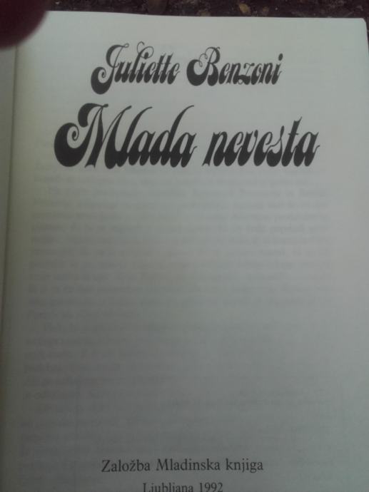 Prodam roman Juliette Benzoni MLADA NEVESTA.Trda izdaja 300 strani.