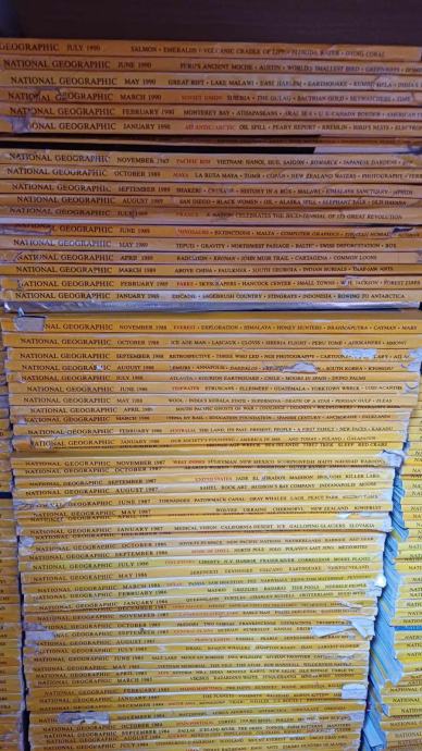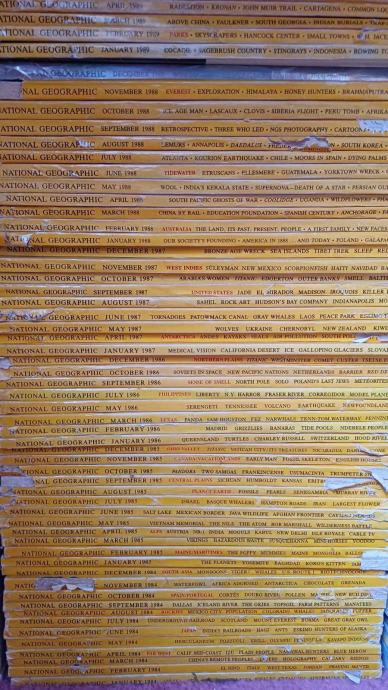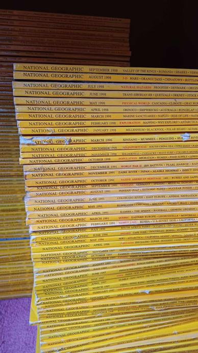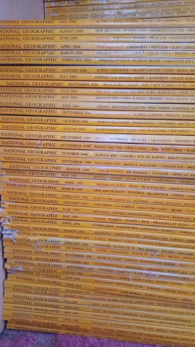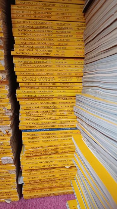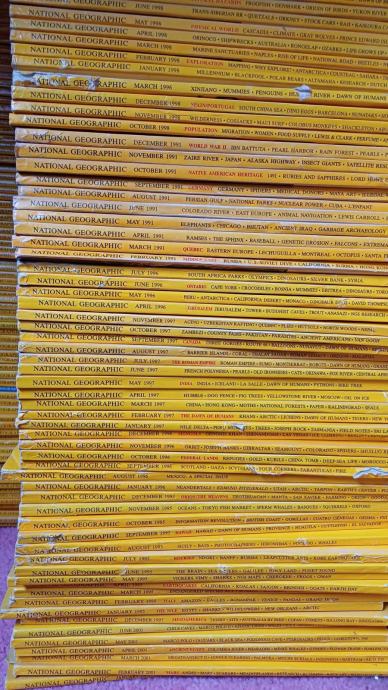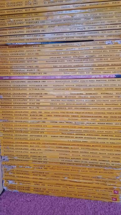 Prodam celotno zbirko revij NATIONAL GEOGRAPHIC leto 1969 (12 številk), 1970 (1 številka), od 1980 do 2006 vsi izvodi, ca. 7 številk različnih letnikov manjka.