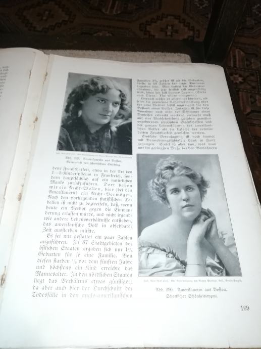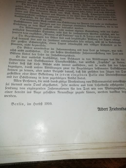 Jezik je nemški, pisava gotica. Knjiga je iz leta 1910 in je edinstven primerek preučevanja in razmišljanja o rasah sveta Ženska s stališča belega človeka. Natančneje arijsko usmerjenih Nemcev.