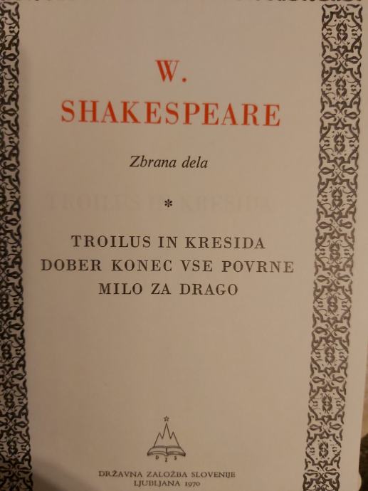 SHAKESPEARE TROILUS IN KRESIDA DOBER KONEC VSE POVRNE MILO ZA DRAGO