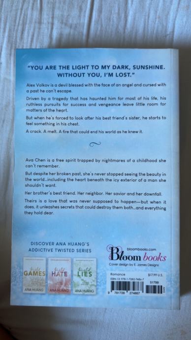 Twisted Love je strastna sodobna romanca o Alexu, hladnem in karizmatičnem moškem z burno preteklostjo, ki se znajde v nepričakovani povezavi z Avo, žensko, ki jo mora varovati in ji je sprva popolnoma tuja. Zgodba je polna intenzivnih čustev, močne kemije in napetosti. Knjiga je v odličnem stanju, prebrana enkrat. Listi so čisti, vezava trdna, platnice lepo ohranjene.