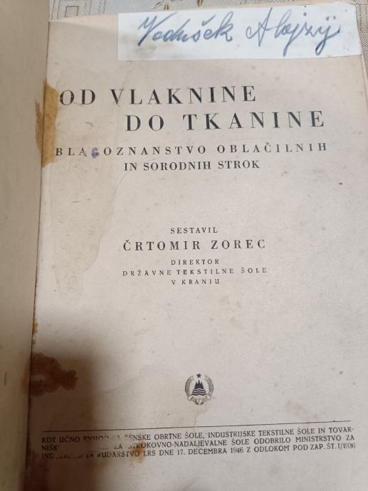 OD VLAKNIN DO TKANINE (ČRTOMIR ZOREC)UČBENIK