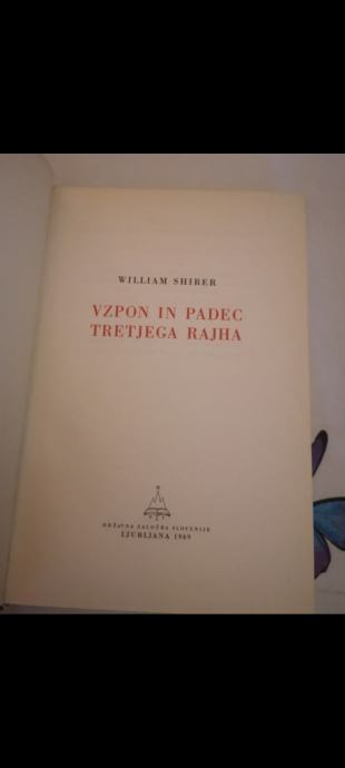 Prodam lepo ohranjeni knjigi Vzpon in padec tretjega rajha 1,2. Kompletno delo v dveh delih. Avtor Shirer.