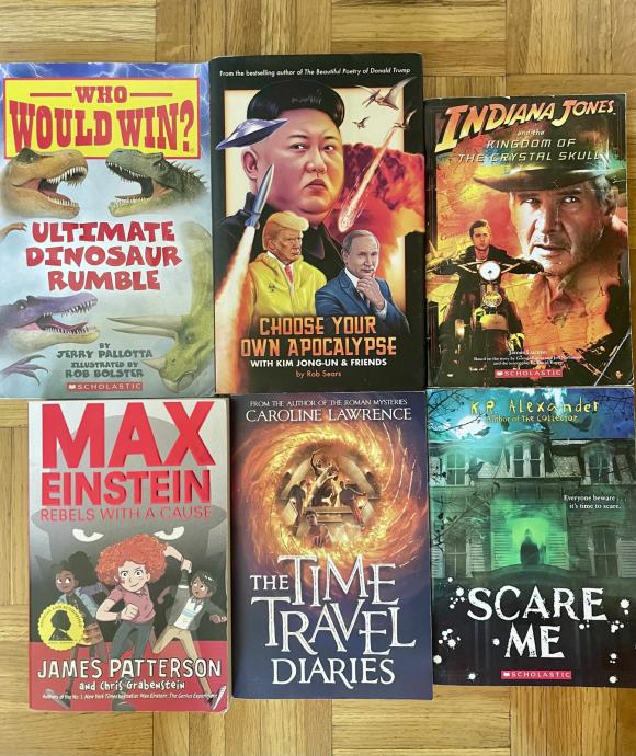Podarim šest knjig v angleščini, tematsko so zanimive za starejše otroke in mlajše najstnike. Knjige so v dobrem stanju. Naslovi so na priloženi fotografiji.