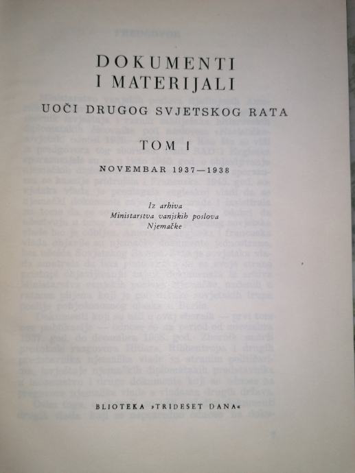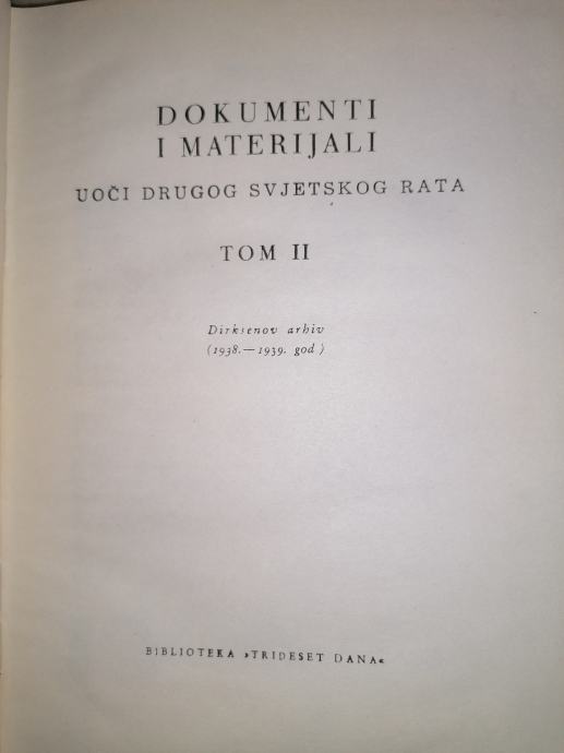 DOKUMENTI I MATERIJALI UOČI DRUGOG SVJETSKOG RATA I-II