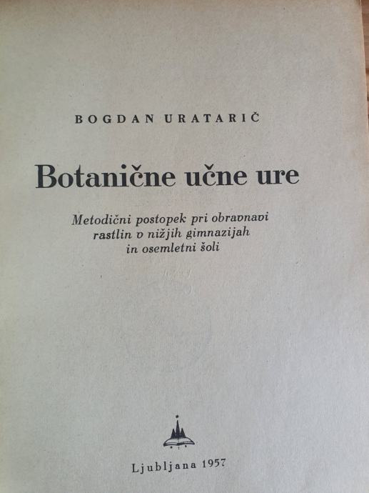 BOTANIČNE UČNE URE, BOGDAN URATARIČ, LJ, 1957, 170 STRANI.