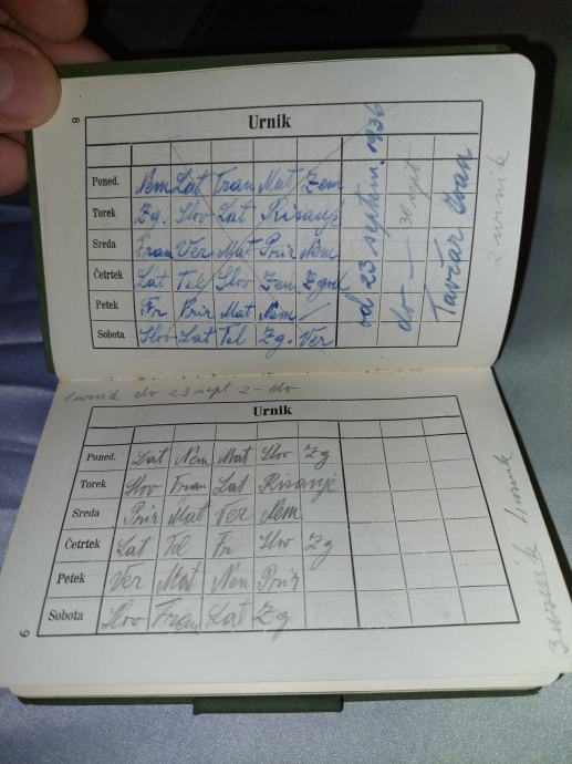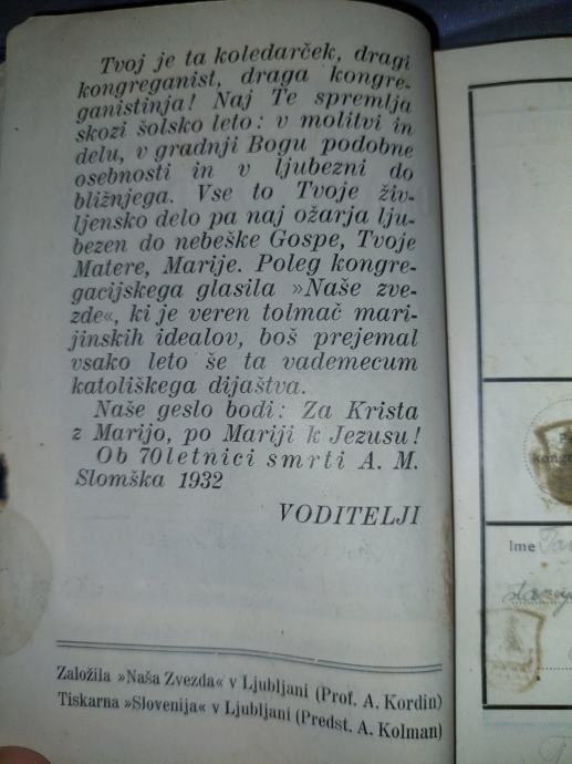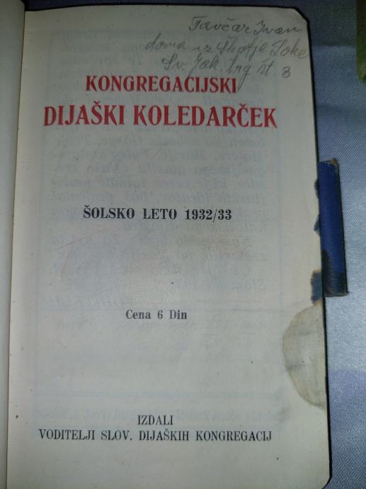DIJAŠKI KONGREGACIJSKI KOLEDARČEK za šolsko leto 1932-33 in 1936-37. Oba kolendarja sta popisana z zapiski, urniki...