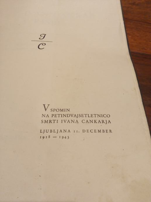 V spomin na petindvajsetletnico smrti Ivana Cankarja Ljubljana II. december 1918 - 1943. Notranjost popolna platnica pa primerna letom vendar brez poškodb.