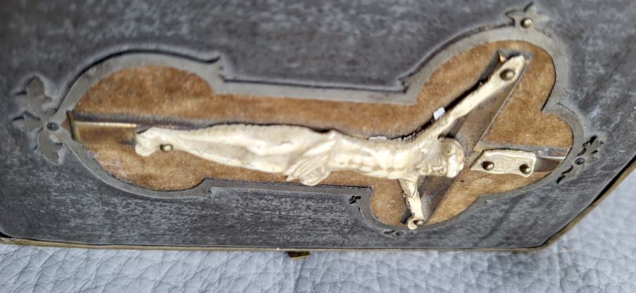 Posebno dobro ohranjen relief sv. križa s križanim. Verjetno oblikovan iz kosti.