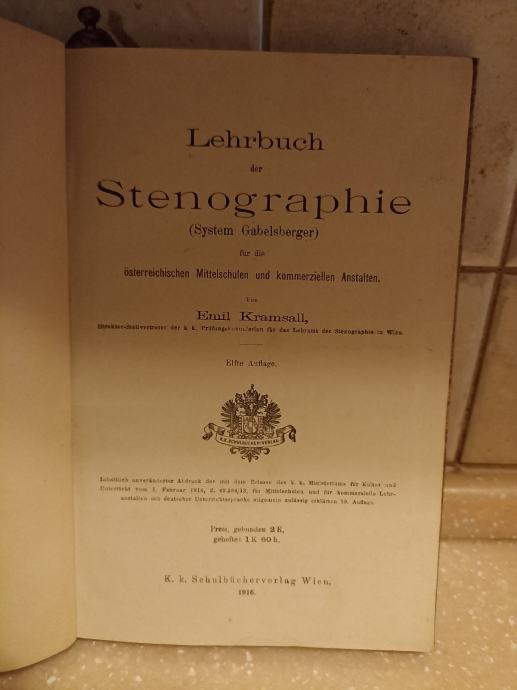 Prodam knjigo stenographie Emil Kramsall sistem Gabelsberger l.1916 odlično ohranjena.lahko po povzetju GSM.041528390.